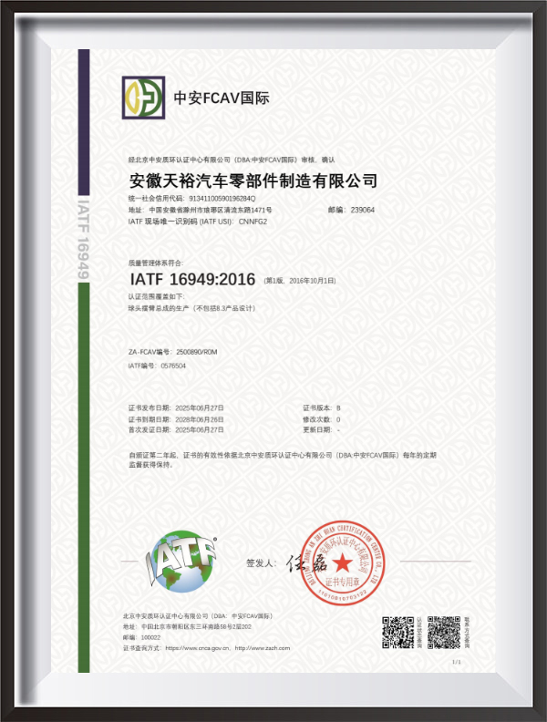 IATF 16949 gecertificeerd, uitgerust met testapparatuur en strenge kwaliteitscontrole.